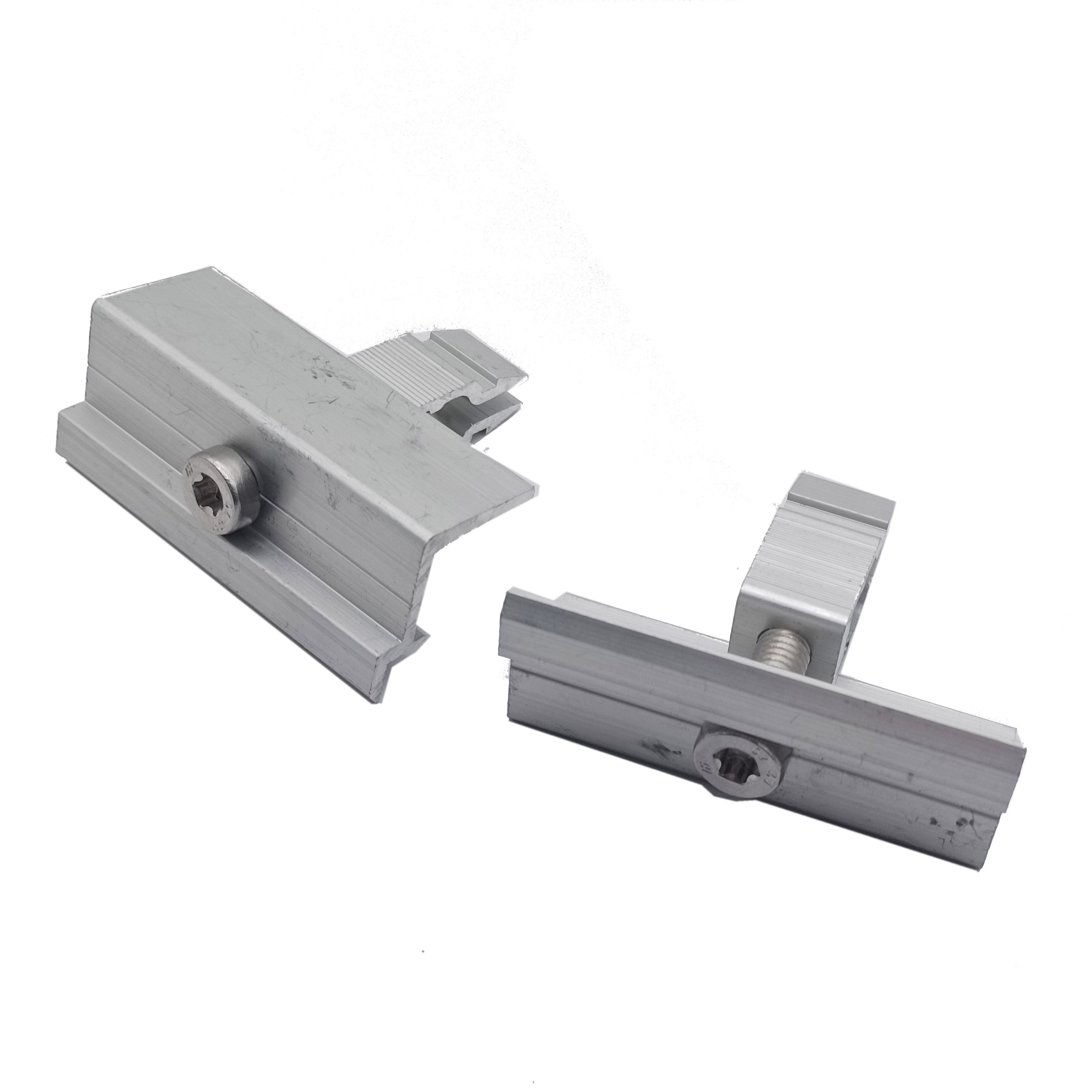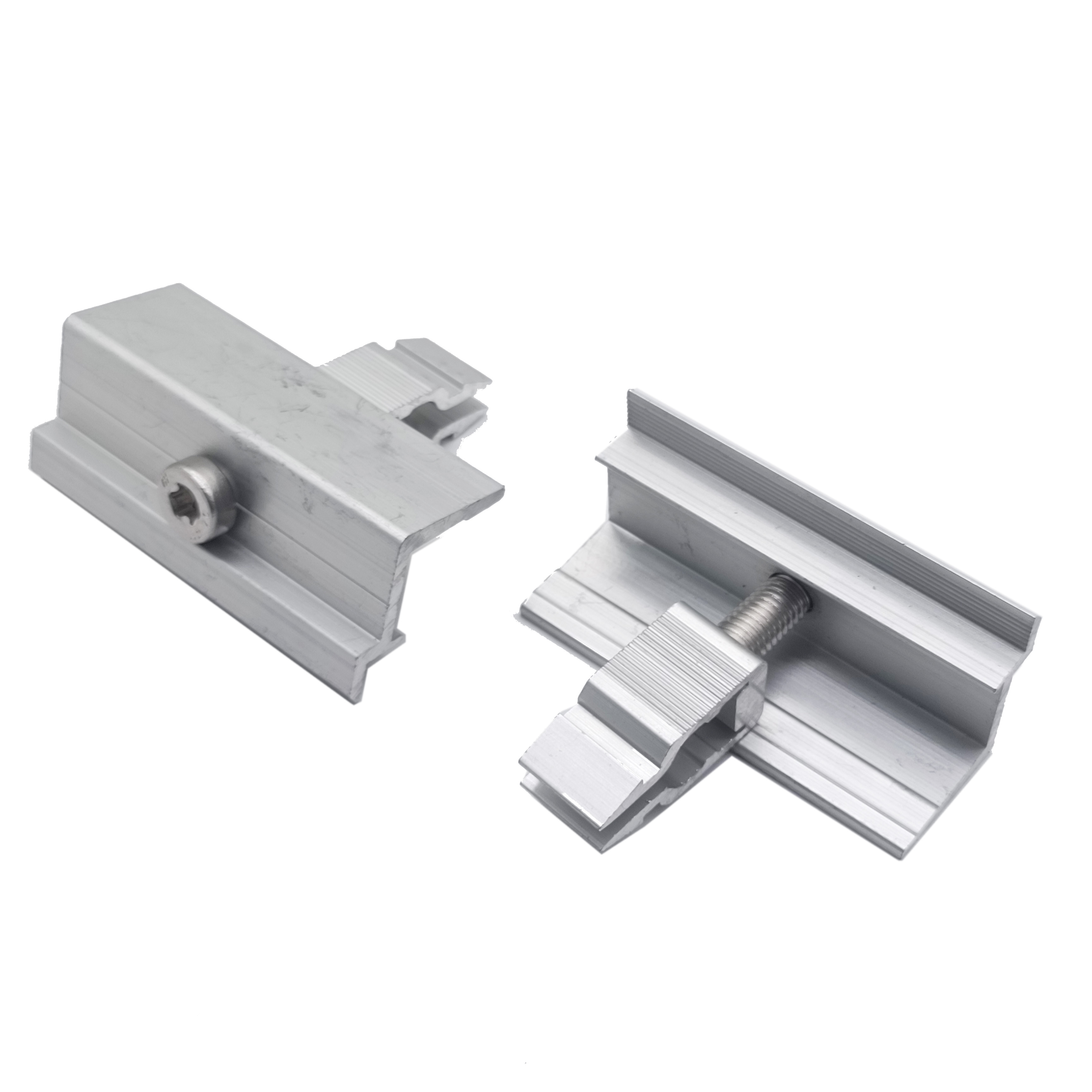 Tres accesorios de aluminio comunes son el riel, la abrazadera intermedia y la abrazadera solar. Existen otros accesorios de aluminio que también se pueden usar para la instalación y mantenimiento de sistemas de montaje solar, como conectores, bases y tuercas de aluminio, etc. Estos accesorios están diseñados para mejorar la estabilidad y confiabilidad del sistema de montaje solar.
