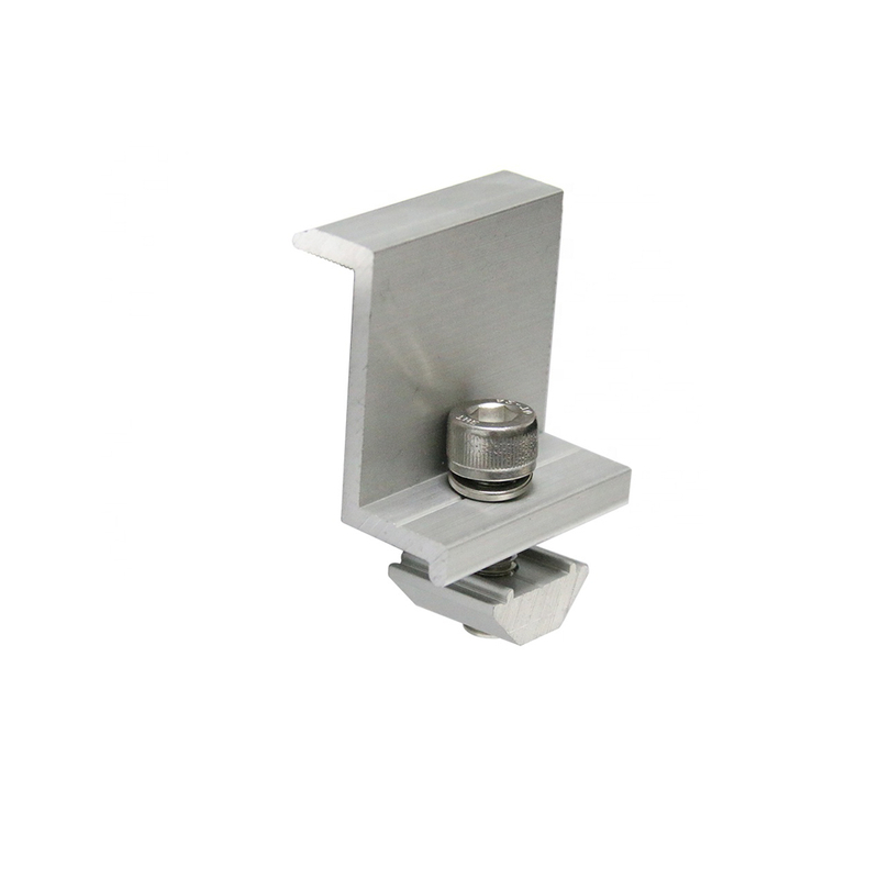 Abrazadera media y abrazadera final es un accesorio que se utiliza para conectar rieles de aluminio y paneles solares, que generalmente consta de dos esquinas de aleación de aluminio. Abrazadera media y abrazadera final Puede proporcionar soporte y estabilidad adicionales para garantizar que el panel solar permanezca estable vertical u horizontalmente.