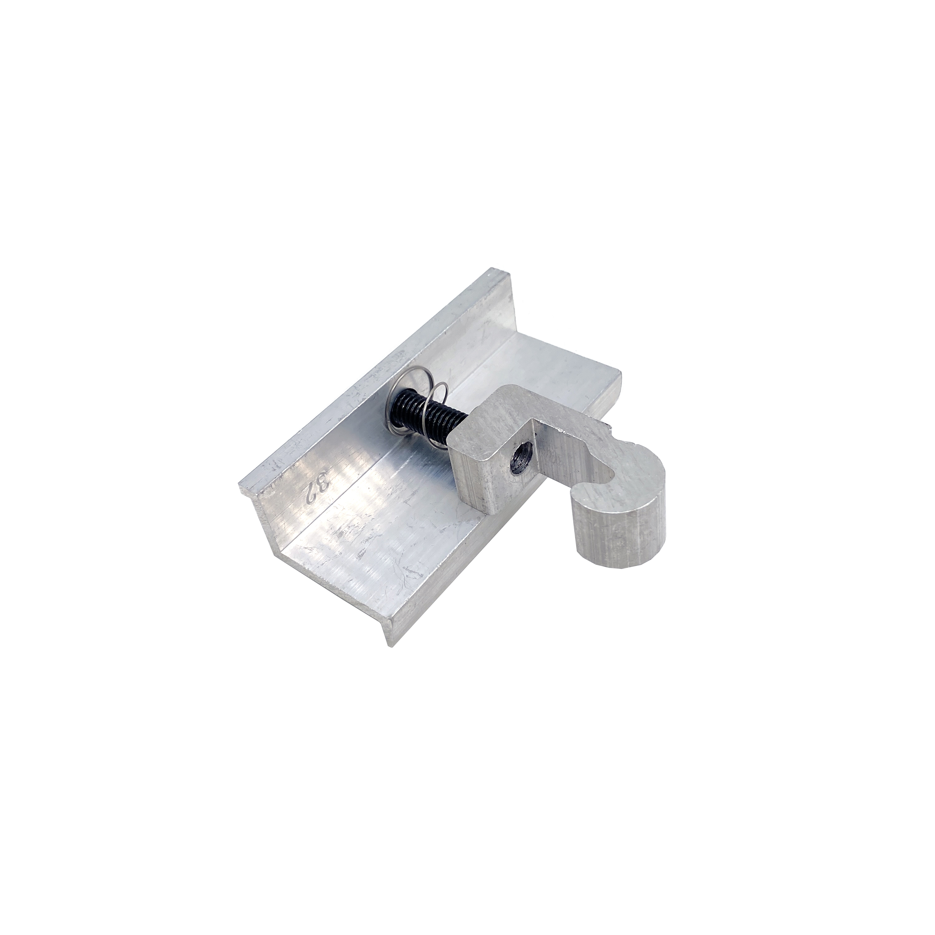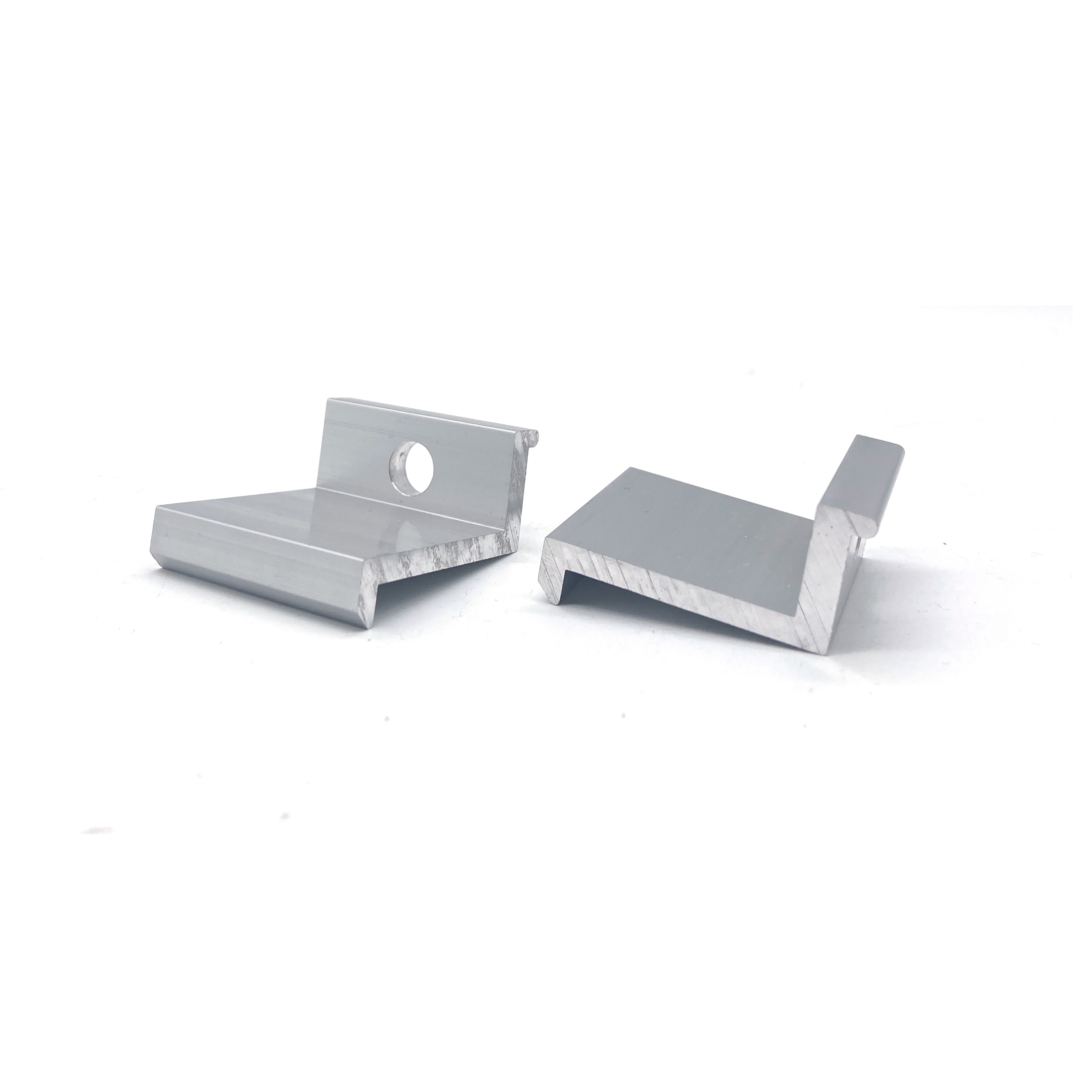 Solar La abrazadera es otro accesorio de aluminio que se utiliza para fijar paneles solares a rieles de aluminio.El dispositivo generalmente está hecho de aleación de aluminio, que tiene alta resistencia y resistencia a la corrosión, lo que puede garantizar que los paneles solares no se dañen ni se tuerzan.