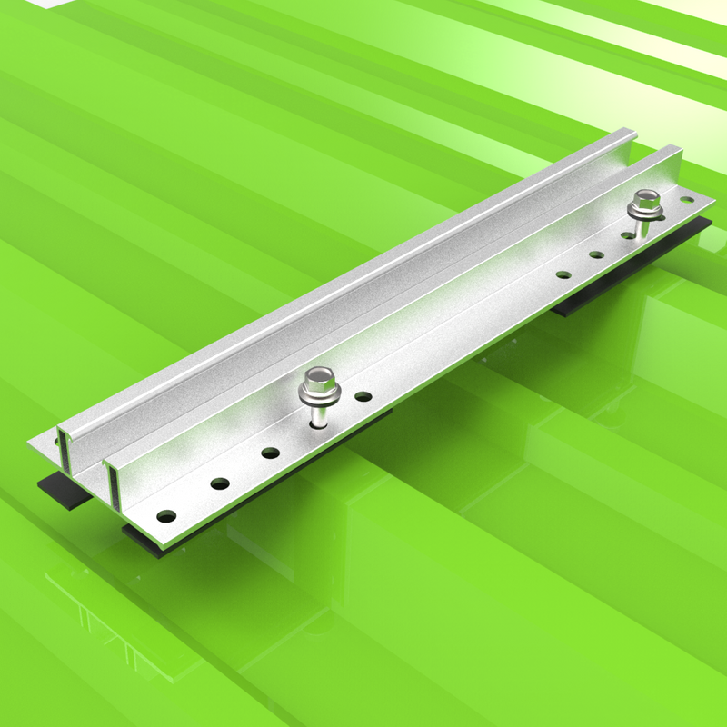 Techo de metal El sistema de montaje es un sistema de montaje solar fotovoltaico para techos metálicos, que es adecuado para varios tipos de estructuras de techos de hojalata.El sistema se compone de gancho solar, sujetador solar, rieles de aluminio, canal de acero galvanizado C, etc., que tiene las características de estructura simple, instalación conveniente y gran capacidad de carga.