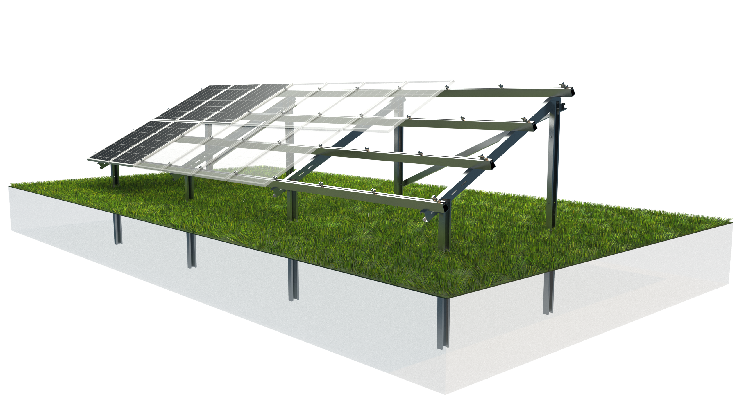 Sistema de montaje en tierra de paneles solares con soporte de acero de canal C