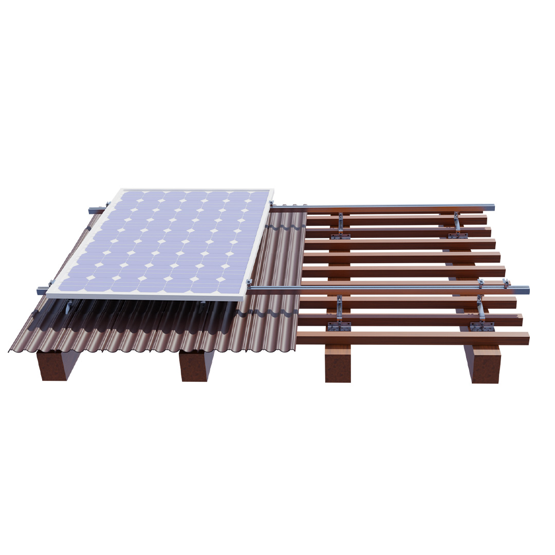 El sistema de soporte de techo de azulejos es un sistema de soporte solar fotovoltaico, adecuado para el techo de baldosas. El sistema está compuesto principalmente de gancho solar, sujetador solar, rieles de aluminio, canal de acero C galvanizado y otros componentes, que tienen las características de una estructura simple, instalación conveniente y una fuerte capacidad de carga.