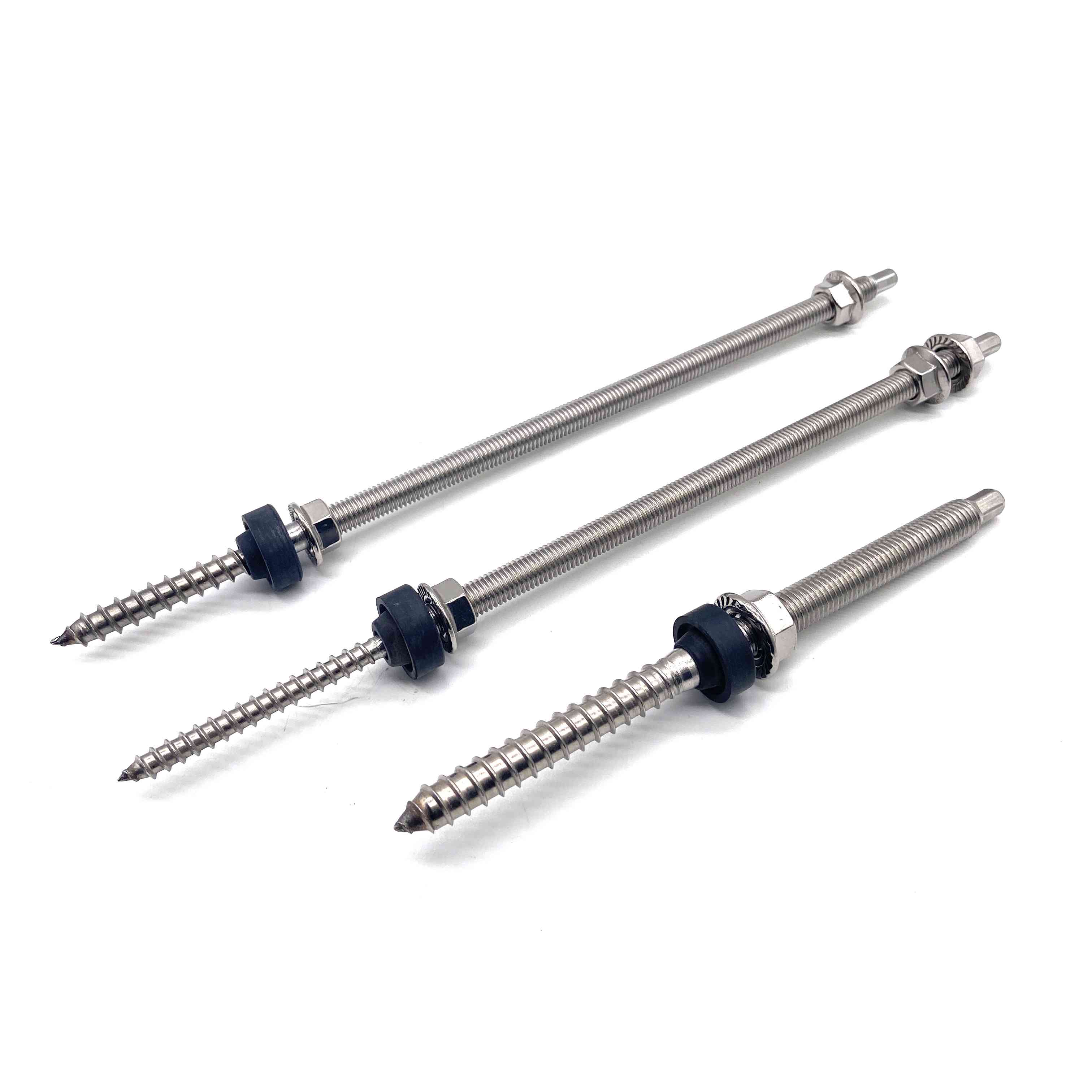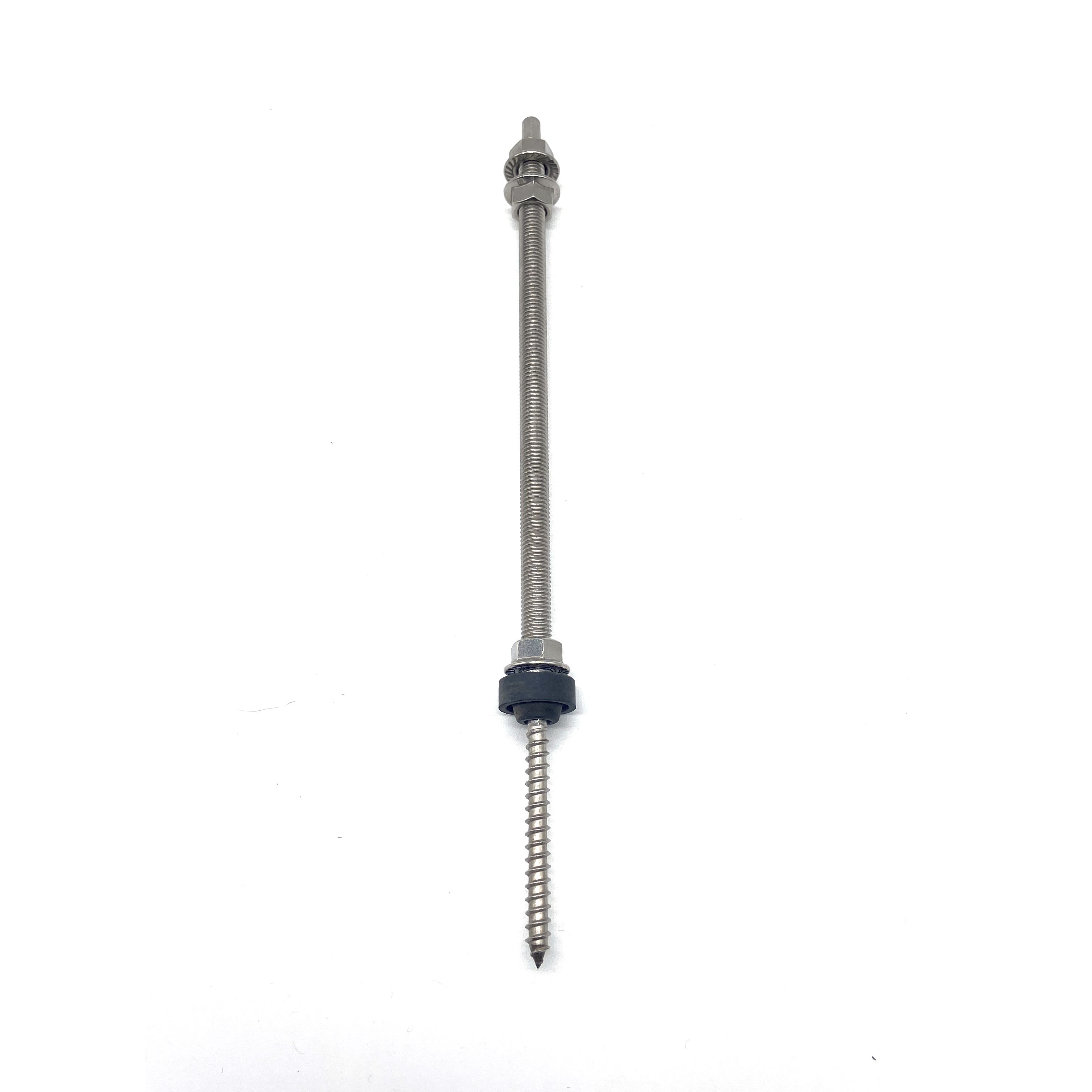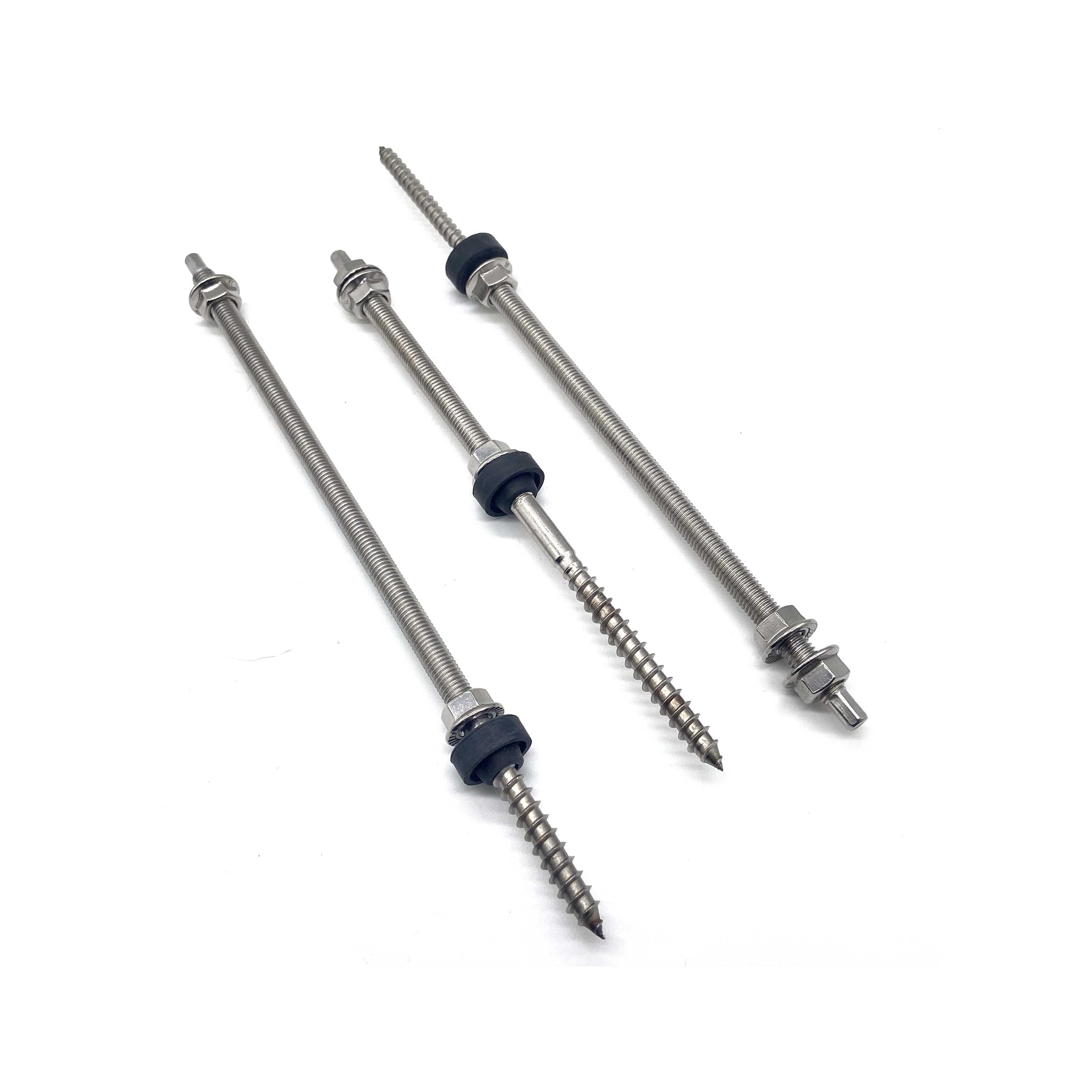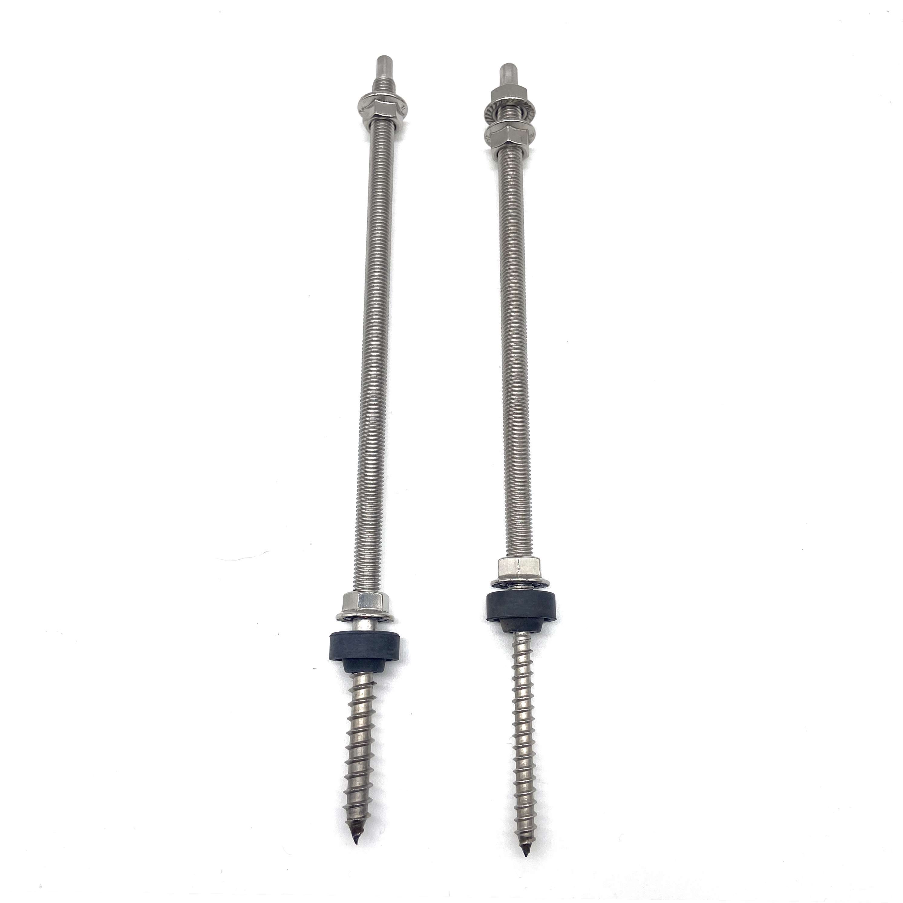 El perno de suspensión es un accesorio del sistema de montaje de techo solar de uso común, está hecho de acero inoxidable, adecuado para instalación en techos de metal corrugado, tejas de acero de color trapezoidal, tejas de asbesto, etc. Los montantes están hechos de acero inoxidable 304 con tuercas con brida M10 y Almohadillas de EPDM, lo que las hace adecuadas para el montaje en vigas de madera y acero.Ambos tipos de pies en L o placas ajustables se pueden utilizar juntos.