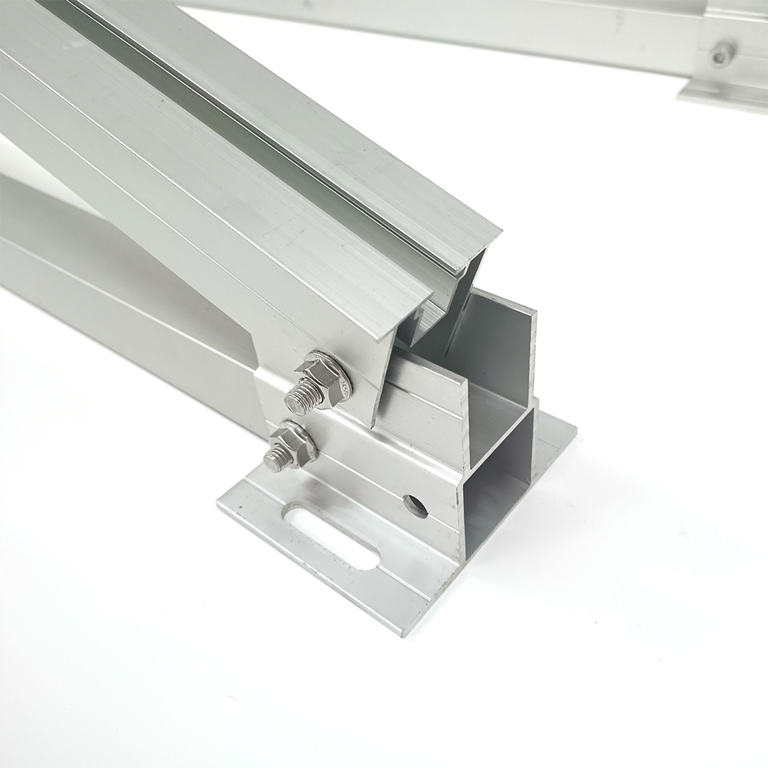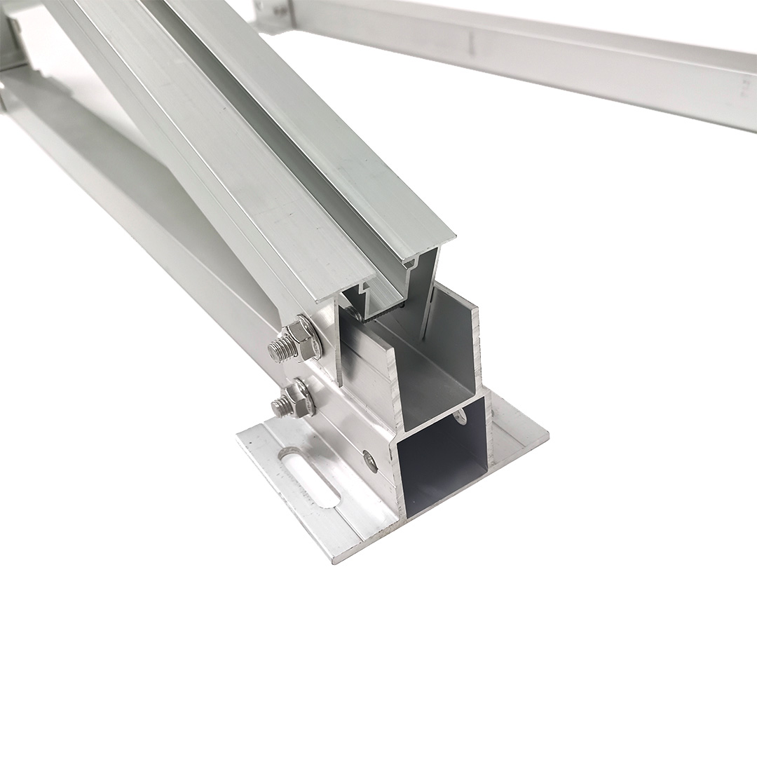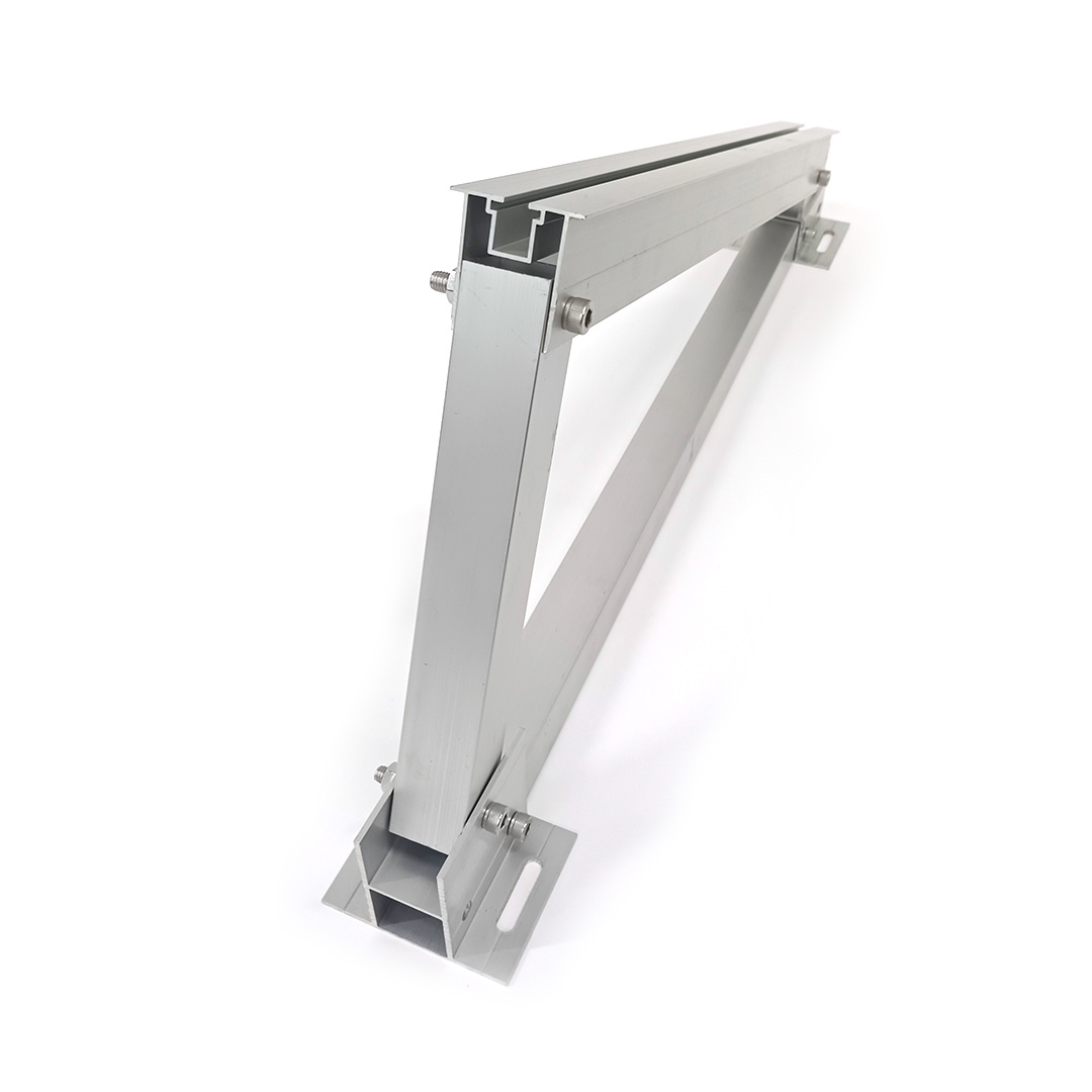 Los soportes triangulares suelen estar hechos de materiales metálicos, como aleación de aluminio o acero inoxidable, que tienen buena resistencia a la corrosión y a la presión del viento. Este soporte está diseñado para ser simple y estable, capaz de soportar eficazmente el peso de los paneles solares y proporcionar buena estabilidad y resistencia al viento a través de su geometría triangular. Los tres vértices de un trípode suelen estar conectados al suelo u otra estructura fija para formar un punto de apoyo sólido.