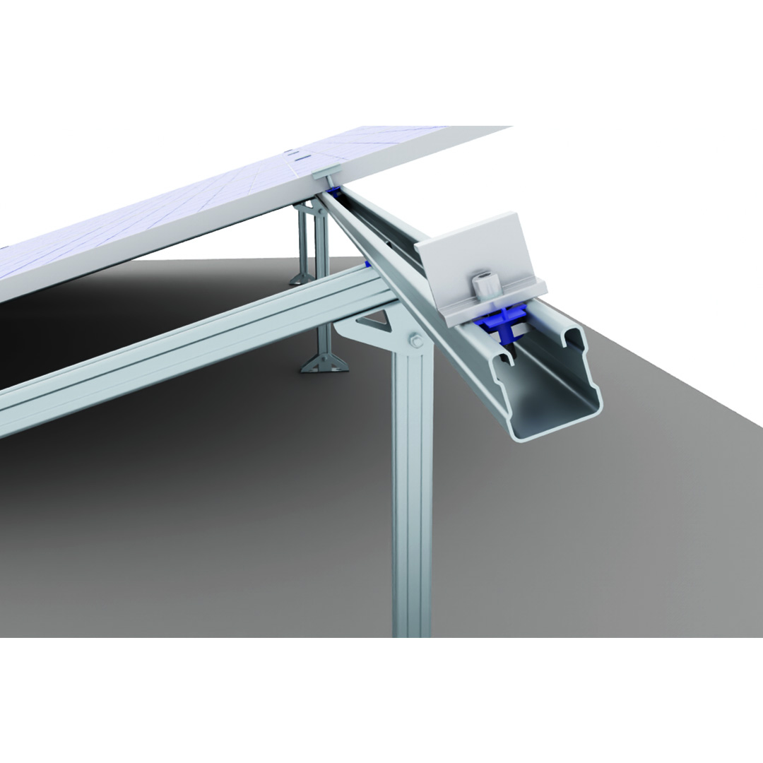 El sistema de soporte de techo plano es un sistema de soporte solar fotovoltaico, adecuado para techos de techo plano. El sistema se compone principalmente de columnas, vigas, aparatos ortopédicos diagonales, rieles guía, canal de acero C galvanizado y otros componentes, que tienen las características de una estructura simple, instalación conveniente y una fuerte capacidad de rodamiento.